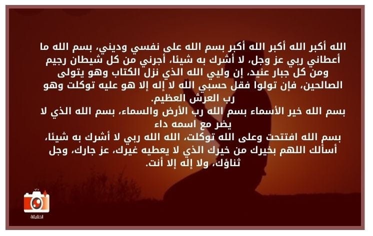 1. أعوذ بك يا الله من كل شر ومن ما أجد وأحاذر، اللهم أحفظني عن يميني وعن شمالي ومن فوقي ومن تحتي، وأعوذ بك يا رحمن يا رحيم أن أغتال من تحتي.