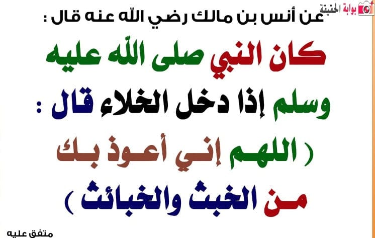 إن للمسلم أذكار وأدعية لابد أن يحرص عليهما، وأنه قد ذكر رسول الله صلى الله عليه وسلم دعاء عند دخوله للإخلاء، ولابد أن يتبع كل المسلمين رسول الله لأنه لا ينطق عن الهوى صلى الله عليه وسلم، فهو وحي يوحي، فلابد أن يستعيذ المسلم من الخبث والخبائث المتواجدين في الحمام، وهذا حتى يحفظه الله حتى يخرج منه.